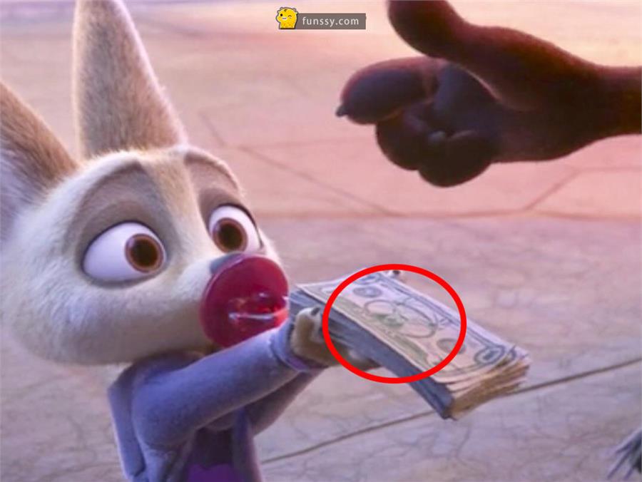 在《動物方城市》裡,他們的錢上都有印上鹿的圖案,因為在英文中「一塊錢」跟「一頭鹿」是一樣的喔!