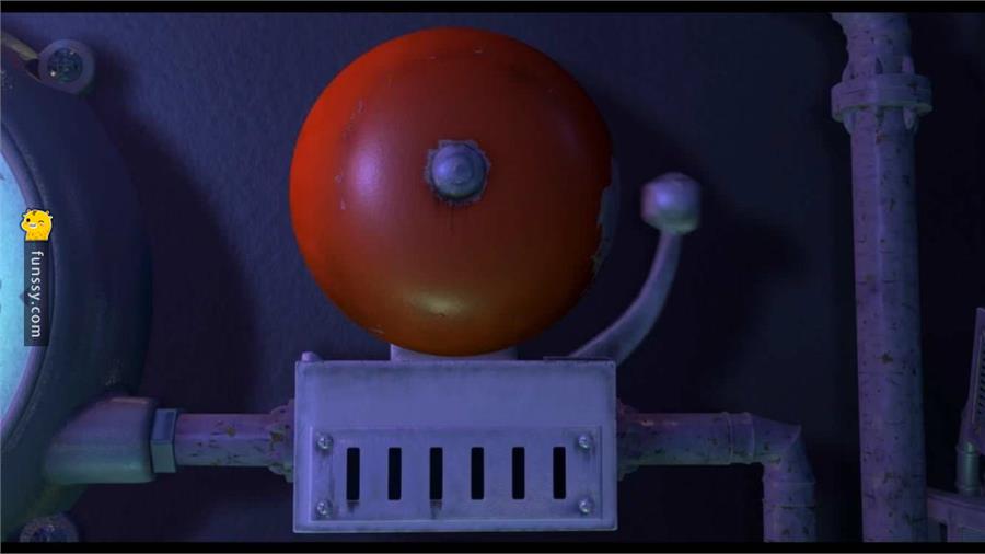 在《怪獸電力公司》裡,那個鐘的油漆都已經掉光,代表每天都在敲鐘,時間久了後就會這樣。