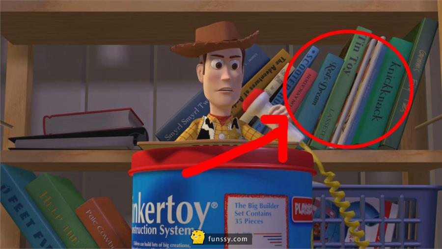 在《玩具總動員》中,背後的書名其實都是皮克斯之前出過的短片喔!
