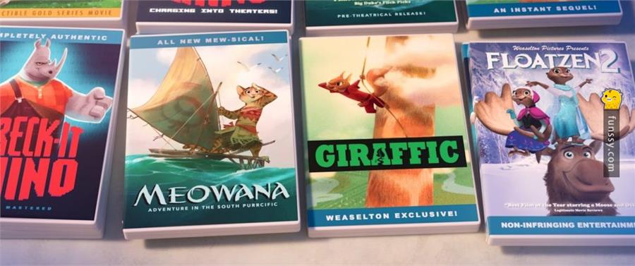 《動物方城市》裡的出現的DVD上面有超多動物版的迪士尼電影。