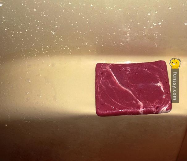 19. 嘗試做薄荷漩渦肥皂,結果看起來像生肉