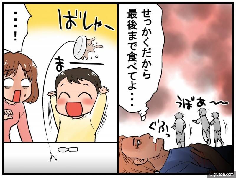 (小孩吃一半開始玩食物)媽媽:......拜託住手啊啊!