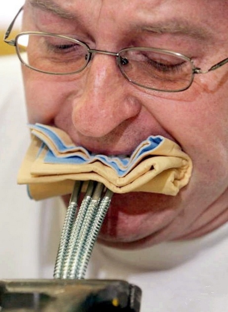 在德國一名男子創造了用牙齒咬彎四枚螺栓的世界紀錄,被稱為牙齒最強硬的